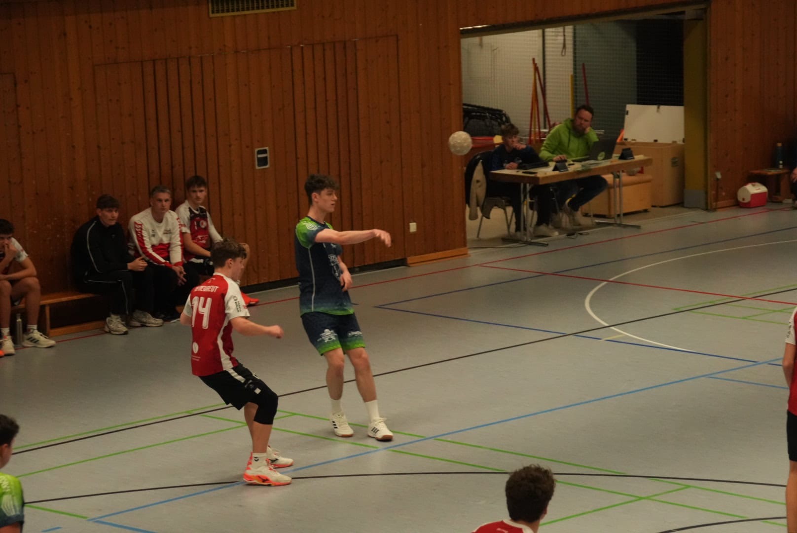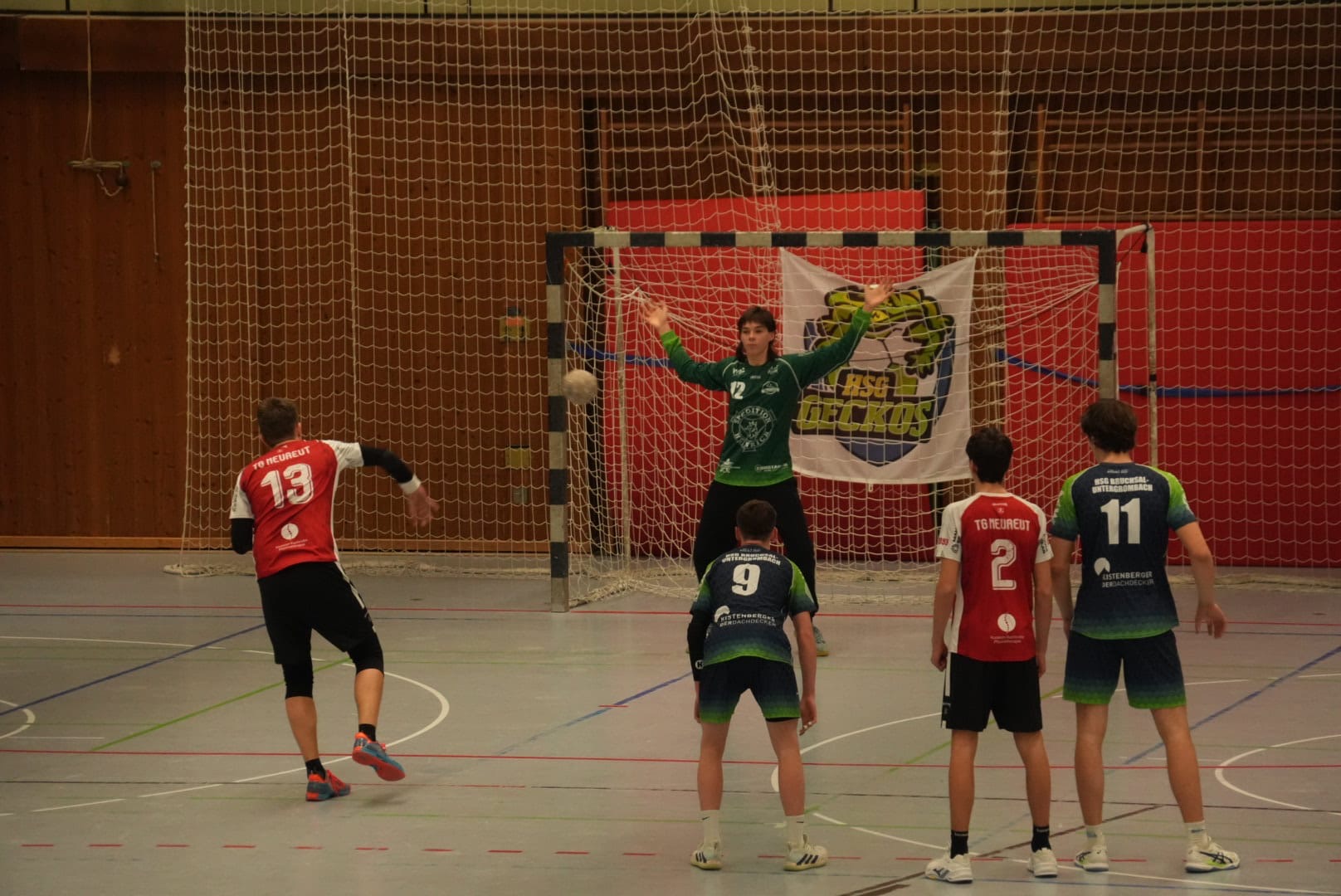 Von Beginn an entwickelte sich in der gut gefüllten Bundschuhhalle ein sehr ausgeglichenes Spiel. Unsere Mannschaft konnte zwar immer wieder mit einem Tor vorlegen, den Gästen gelang jedoch immer direkt der Anschlusstreffer. Folgerichtig ging es mit einem Unentschieden in die Halbzeitpause.