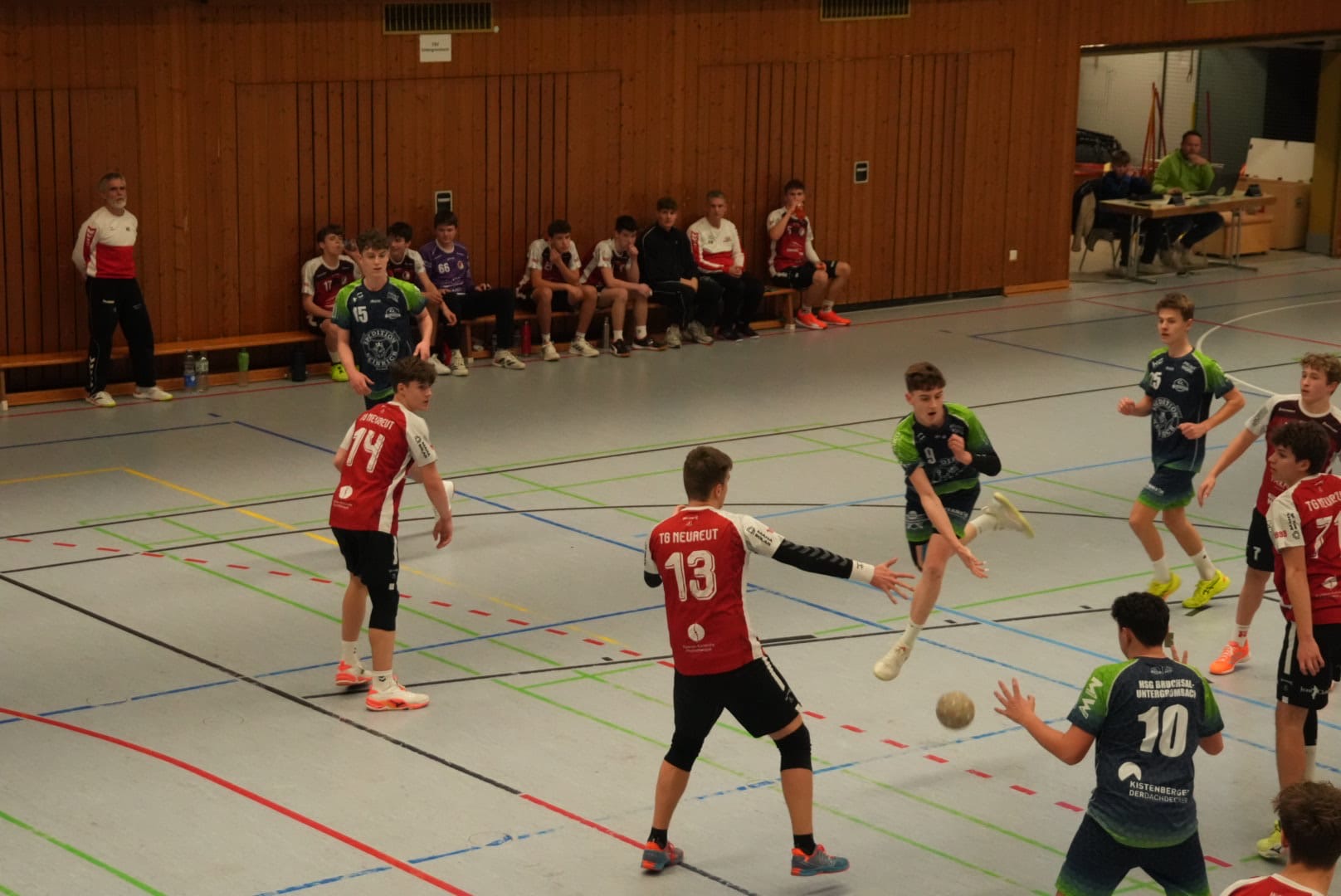 Dem Tabellenführer aus Neureut musste sich unsere B-Jugend nach einem insgesamt ausgeglichenen Spiel nur knapp geschlagen geben. Gegen die körperlich starken Gäste hielt die HSG lange sehr gut mit und musste erst in der Schlussphase etwas abreißen lassen (28:32). Unsere Jungs gaben sich jedoch nicht auf und kamen sogar noch auf ein Tor heran. Für eine komplette Wendung des Spiels reichte es leider nicht mehr.