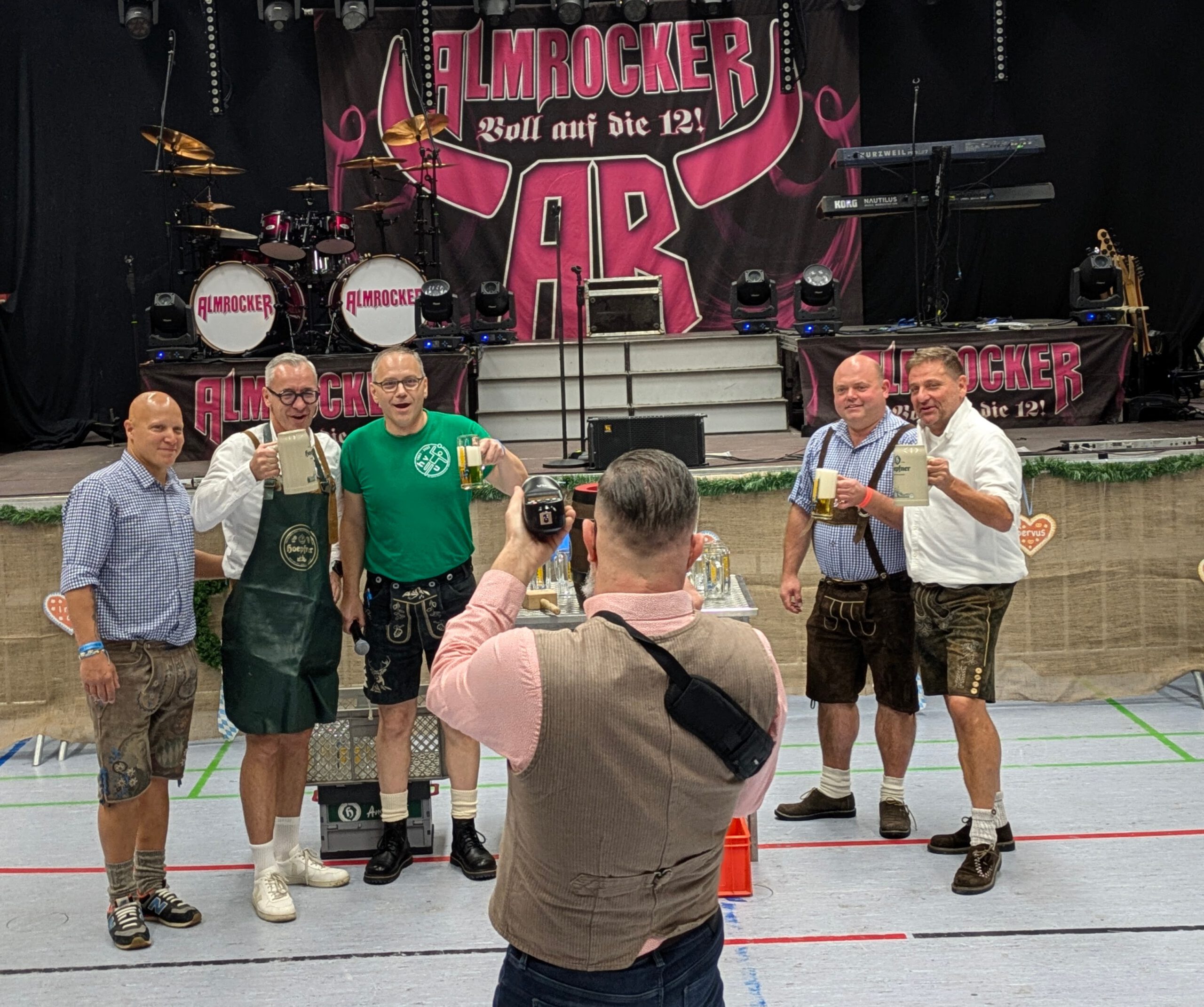 Für musikalische Unterhaltung sorgte am Samstagabend die Band „Almrocker“, die mit stimmungsvoller Partymusik die Gäste von den ersten Takten an begeisterte. Schnell wurde auf den Bänken getanzt und ausgelassen gefeiert – die gute Laune hielt bis in die späten Stunden an.