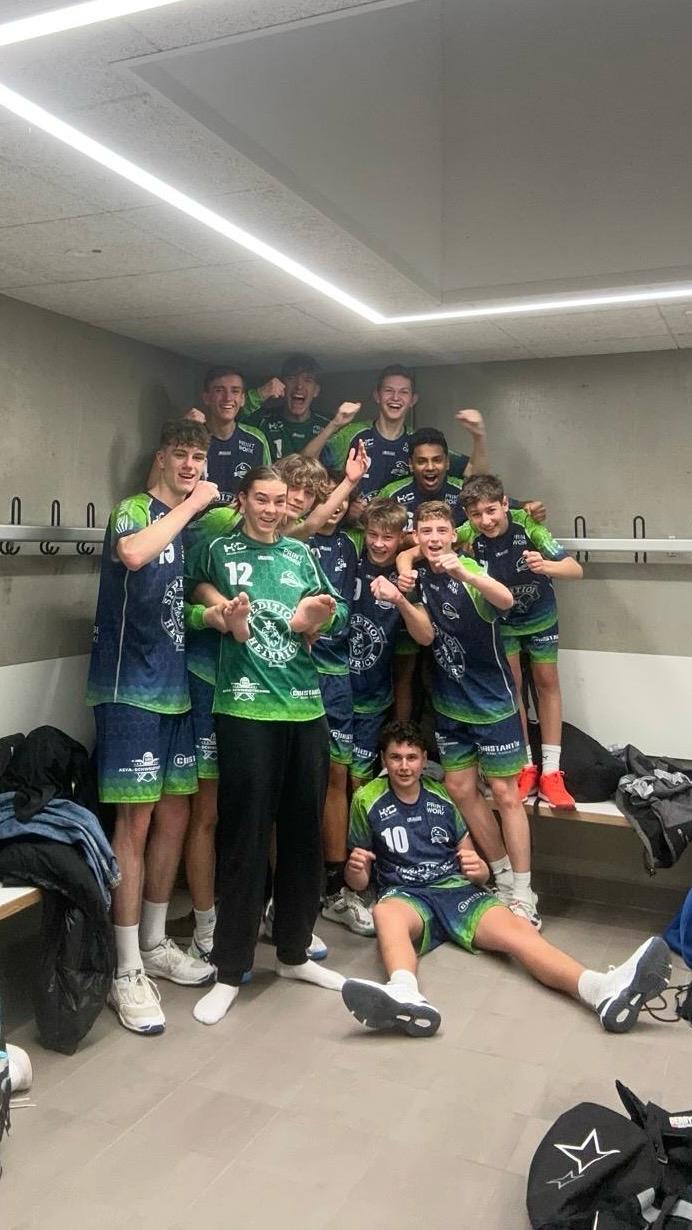 Spieler HSG: Philipp Bruder & Leo Kalchschmidt (Tor), Lorenz Kröger (8), Leo Becker (7), Till Klotz (7/3), Emanuel Proß (7), Levi Killinger (4/1), Nico Zweifel (2), Witold Enderlin (1), Erik Schwabenland (1), Johannes Jung, Apiram Annalingam, Lukas Mangei